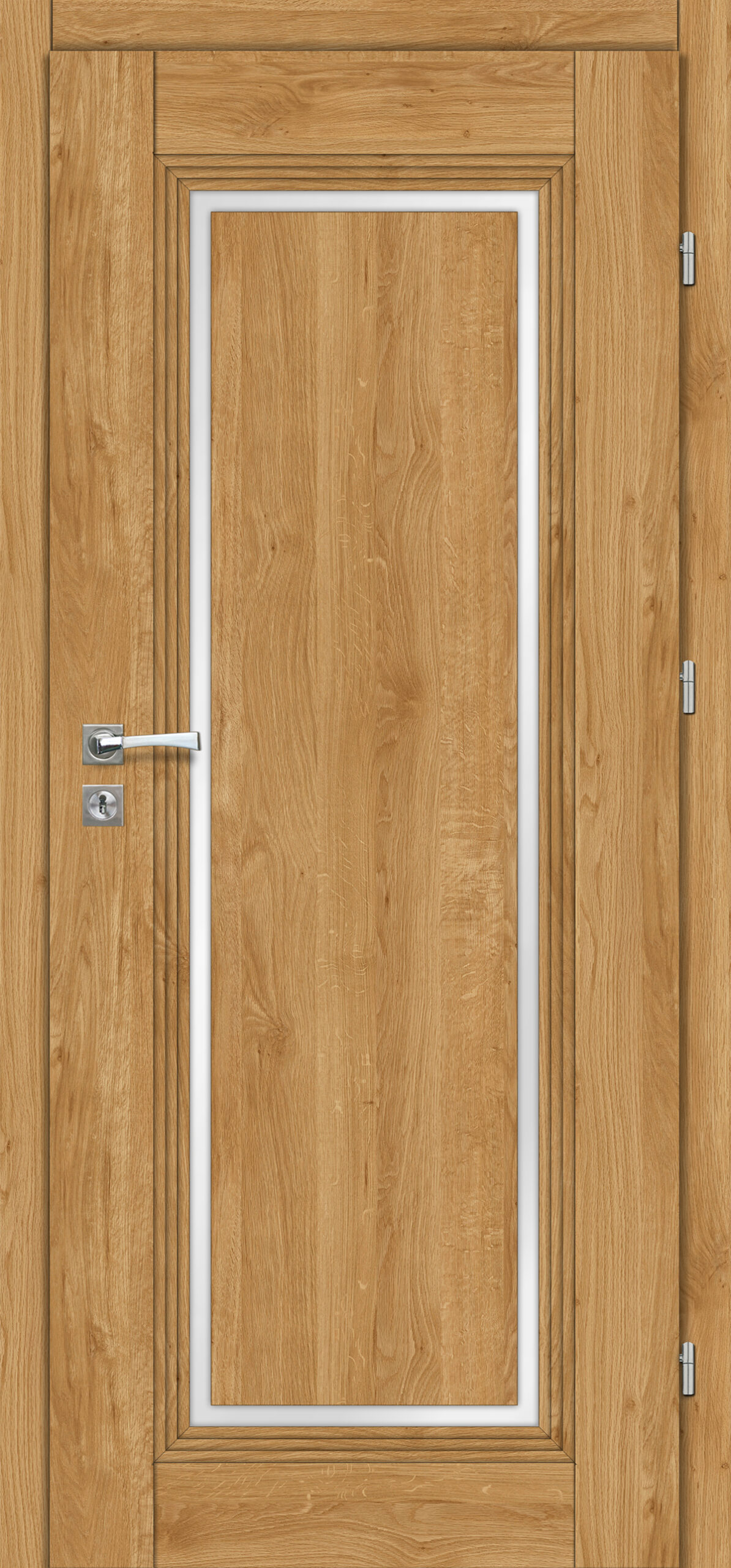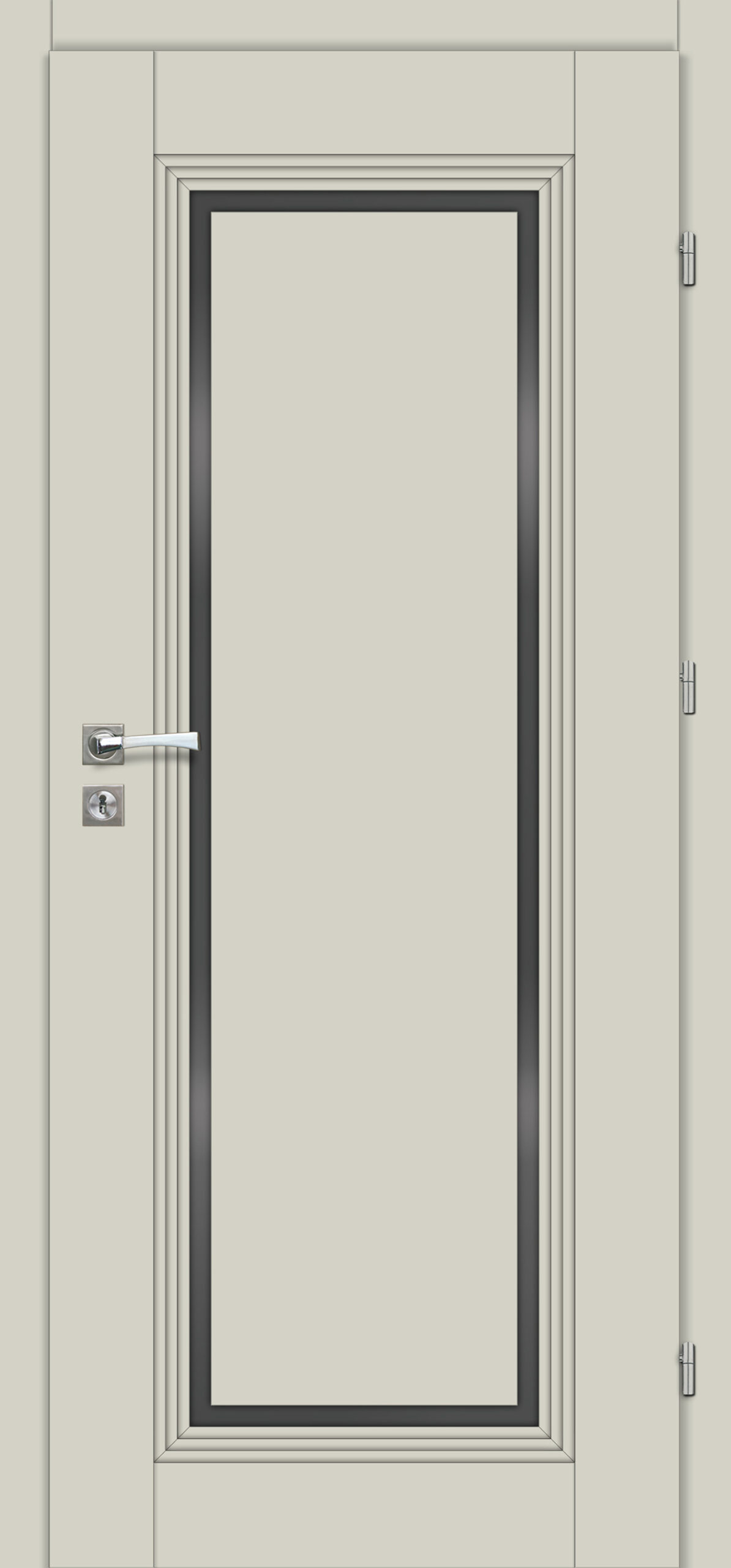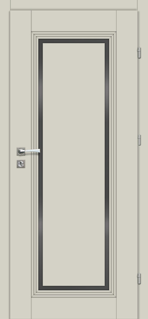 Tömör MDF szerkezetű keretes ajtószárny MDF átfogótokkal 3 betekerhető csapos zsanér Nyíló-, vagy toló-, 1 és 2 szárnyú kivitelben is A középső panel fekete pácolt lemezből készül, a panel pereme nincs szegélyezve, a panel eleje az ajtószárny színének megfelelő díszítéssel borított. Elérhető szélességek: „60”, „70”, „80”, „90” „100” Kilincs nélkül